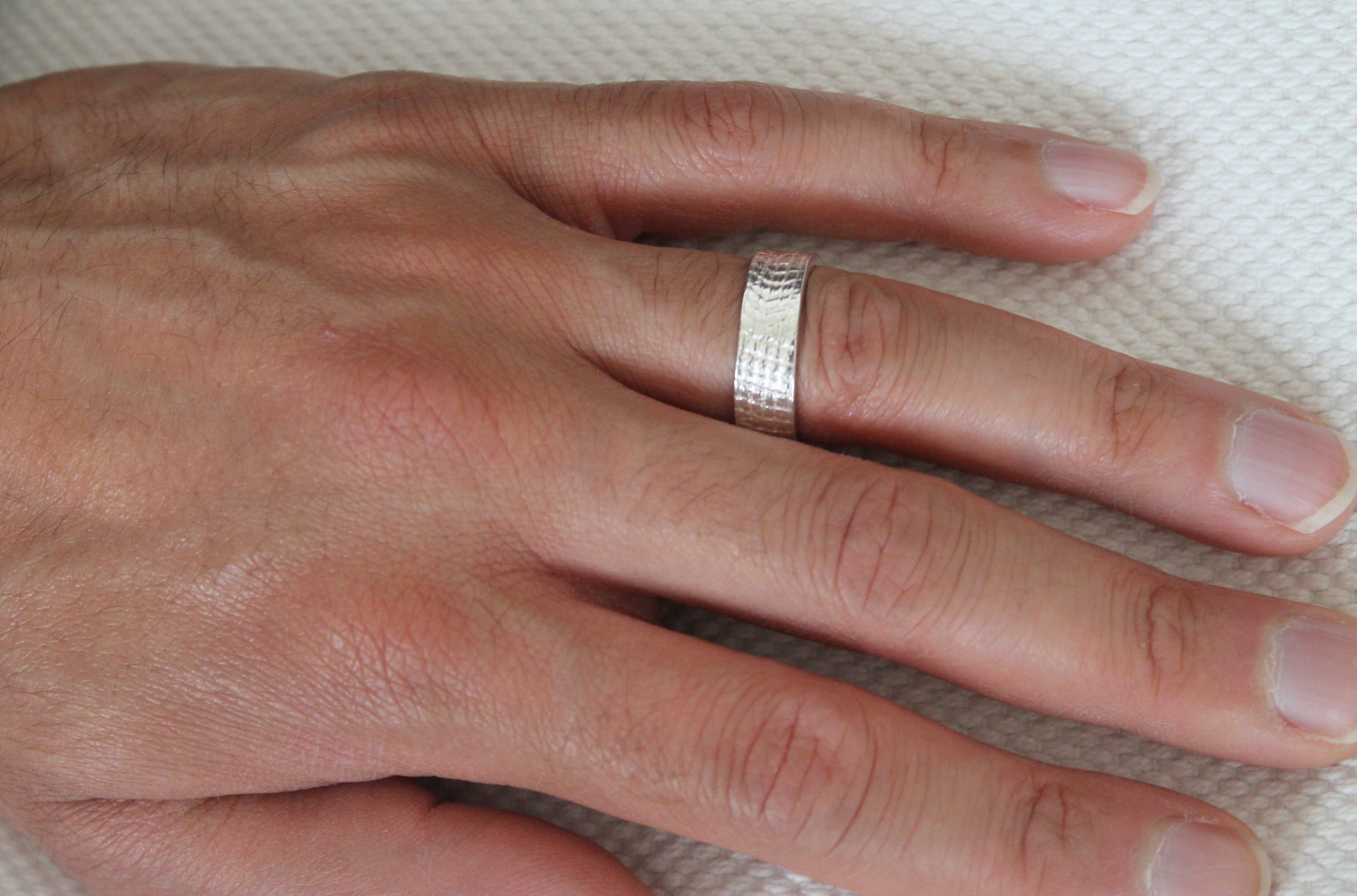 Having a lovely finish this ring is available to order in different ring sizes and widths as well as gold for a unique wedding band. Please contact for gold wedding band quotes.
