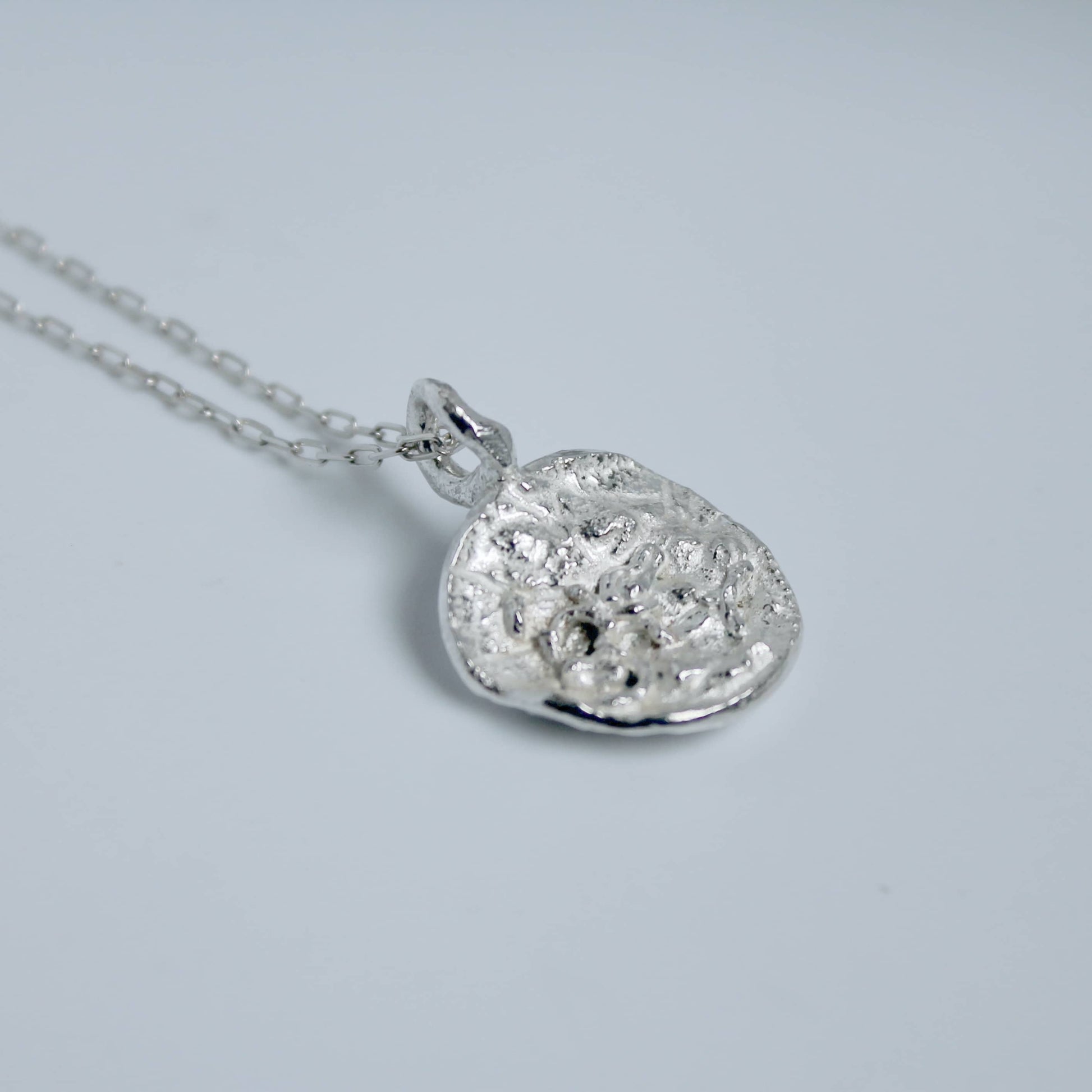 Solid silver rippled edge pendant,18mm diameter supplied on silver chain.